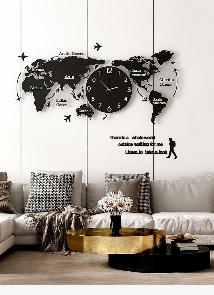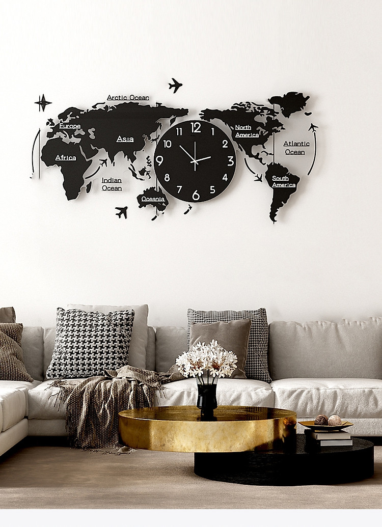 Ngày nay, trong thế giới hiện đại thì đồng hồ treo tường trang trí không chỉ đáp ứng nhu cầu xem giờ mà còn là món đồ trang trí làm đẹp cho không gian sống trong căn nhà của bạn. Nắm bắt nhu cầu đó, P-HOME với đội ngũ thiết kế sản phẩm nội thất chuyên nghiệp, đặc biệt là trong lĩnh vực đồng hồ treo tường nội thất, đã lên ý tưởng và thiết kế ra những sản phẩm đồng hồ treo tường bản đồ thế giới với phong cách đơn giản nhưng không kém phần tinh tế và sang trọng.
