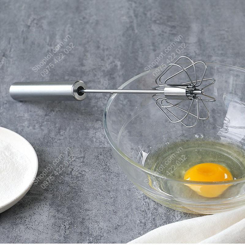 Dụng cụ đánh trứng thông minh bán tự động H012, dài 32.5cm, bằng inox 304, ấn tay lên xuống là đầu đánh trứng quay