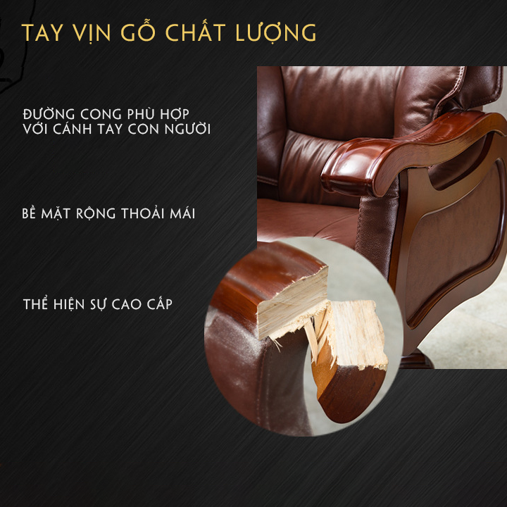 - Tay vịn có gỗ chất lượng,bề mặt rộng thoải mái, thể hiện sự cao cấp.