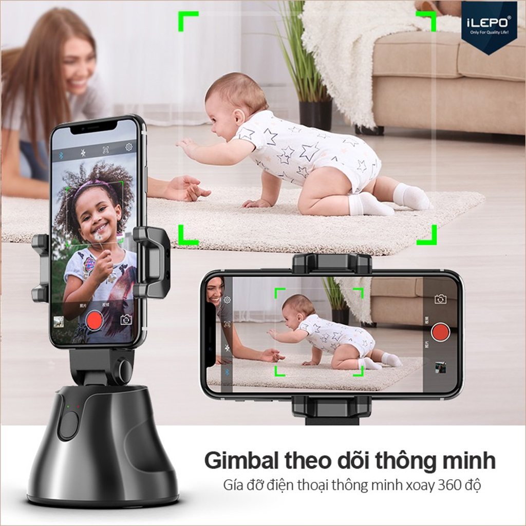 Hơn thế nữa khi bạn quay video không lo cầm điện thoại xoay theo chuyển động. Với giá đỡ điện thoại xoay 360 độ này nó tự động chuyển động theo dự di chuyển của vật thể.