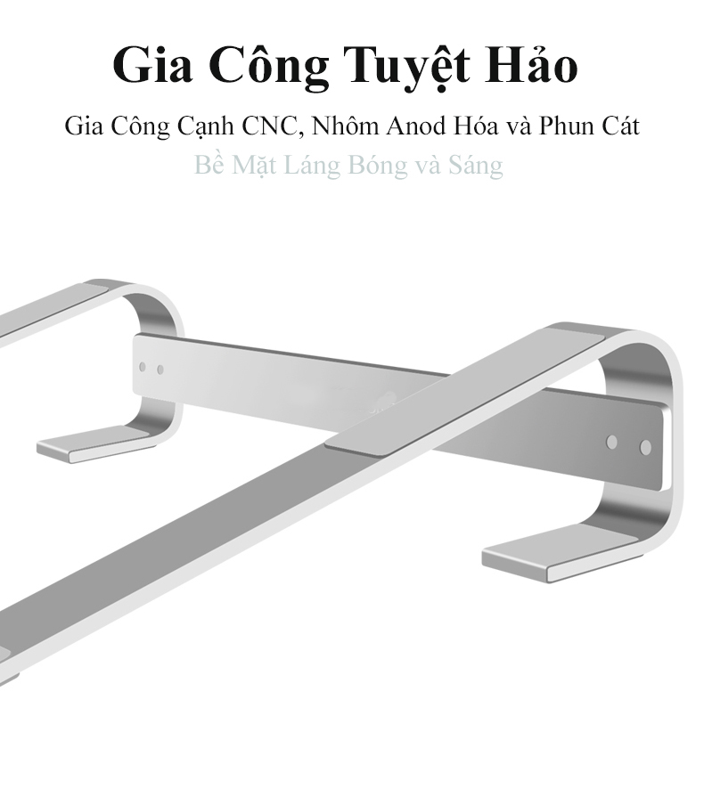Chất liệu hợp kim nhôm cao cấp với độ dày 4mm Cấu trúc bền chắc, gọn nhẹ nhưng chịu lực mạnh Gia công CNC, bề mặt xử lý anod hóa và phun cát Thiết kế tản nhiệt, bảo vệ máy tính hoạt động thông thoáng Chịu lực mạnh, không bị rung lắc khi gõ bàn phím Thiết kế góc nhìn 17 dộ, trải nghiệm xem tốt nhát Miếng đệm mềm dưới đế giúp tăng tính ma sát với mặt bàn Miếng đệm mềm trên bề mặt giá đỡ bảo vệ toàn diện Laptop Tương thích với Laptop kích thước 10-18 inches Trọng lượng nhẹ gọn 260g