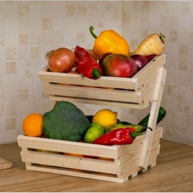 (Giá Xưởng) Giá Để Trai Cây 2 Tầng Gỗ Thông Nhập Khẩu
