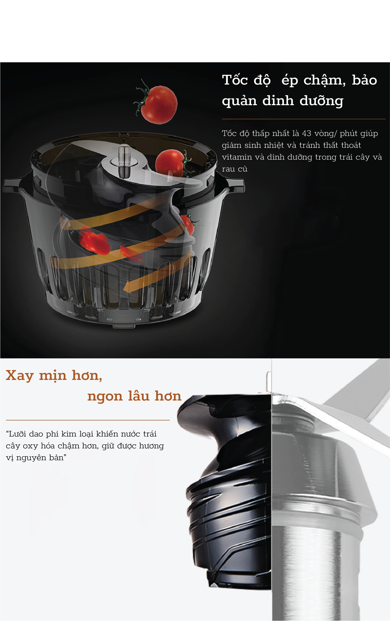 5 - Ép chậm hơn giúp nguyên liệu giữ trọn vẹn hương vị và vị tươi của thực phẩm.
