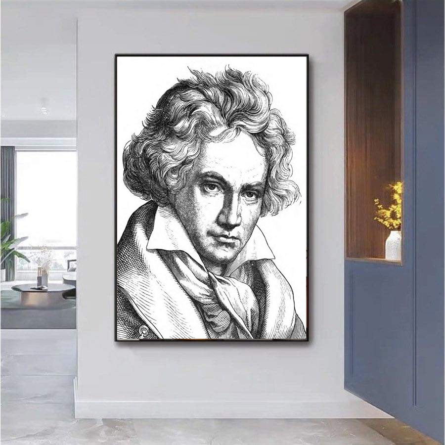 Giới thiệu (HCM)Tranh treo tường nhạc sĩ Beethoven, Mozart trang trí lớp học nhạc, phòng thu âm kèm đinh treo