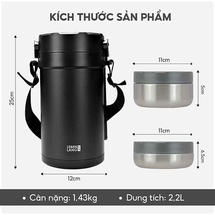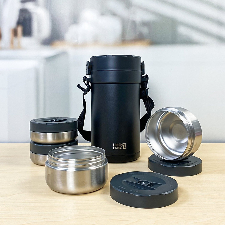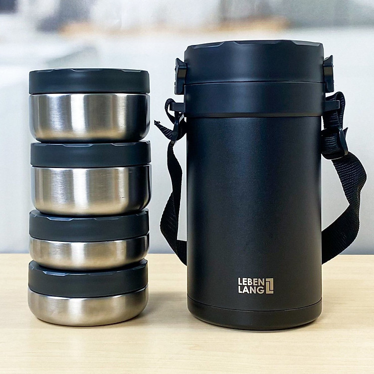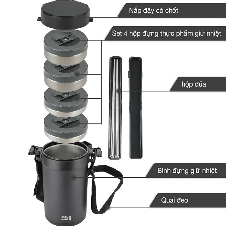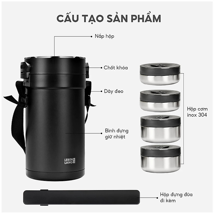 Giới thiệu Hộp cơm giữ nhiệt 4 ngăn inox 304 chuẩn Đức LBT856, dung tích 2.2L kèm đũa