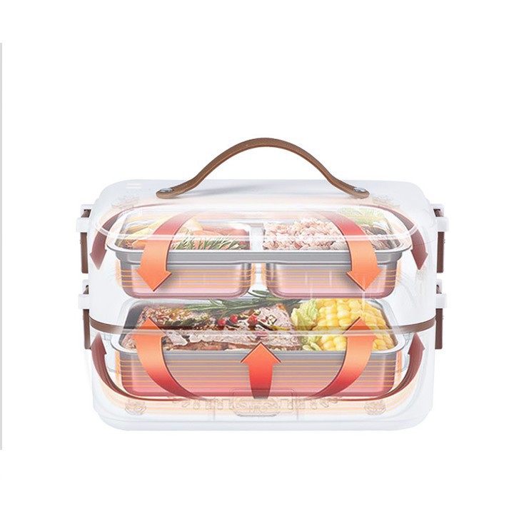 • Nơi làm việc của bạn có chỗ cắm điện (khoảng 15-30 phút để hâm nóng thức ăn). Hộp cơm hâm nóng 2 tầng - Dòng sản phẩm này được nhiều người đánh giá cao bởi thời gian làm nóng đồ ăn nhanh chỉ mất 5 phút và nấu chín đồ ăn chỉ mất 30p. - Chất liệu ngăn chứa thực phẩm làm từ inox cao cấp đảm bảo sức khỏe người sử dụng, tách rời khỏi hộp nên dễ vệ sinh. ---------------------------------------- => Cách hoạt động của hộp hâm nóng bằng hơi nước: