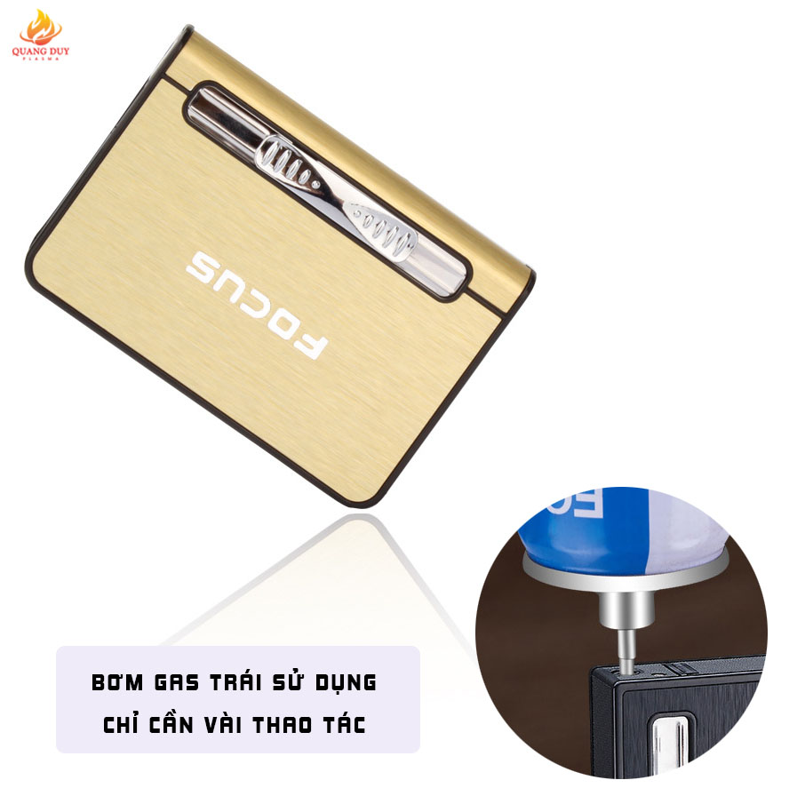 Hộp đựng thuốc focus 10 điếu kiêm bật lửa khò 1 tia sang trọng tiện lợi