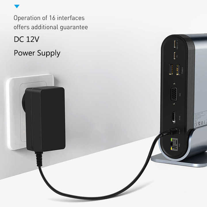 - 16 in 1 Model (CAHUB-BG0G): USB 3.0*3 + USB 2.0*2 + HDMI +VGA +TF/SD Card Reader + RJ45 +PD + PC +3.5mm Jack + DC Port + PD Cable + UK/EU Plug + CN DC Cord (Suit)