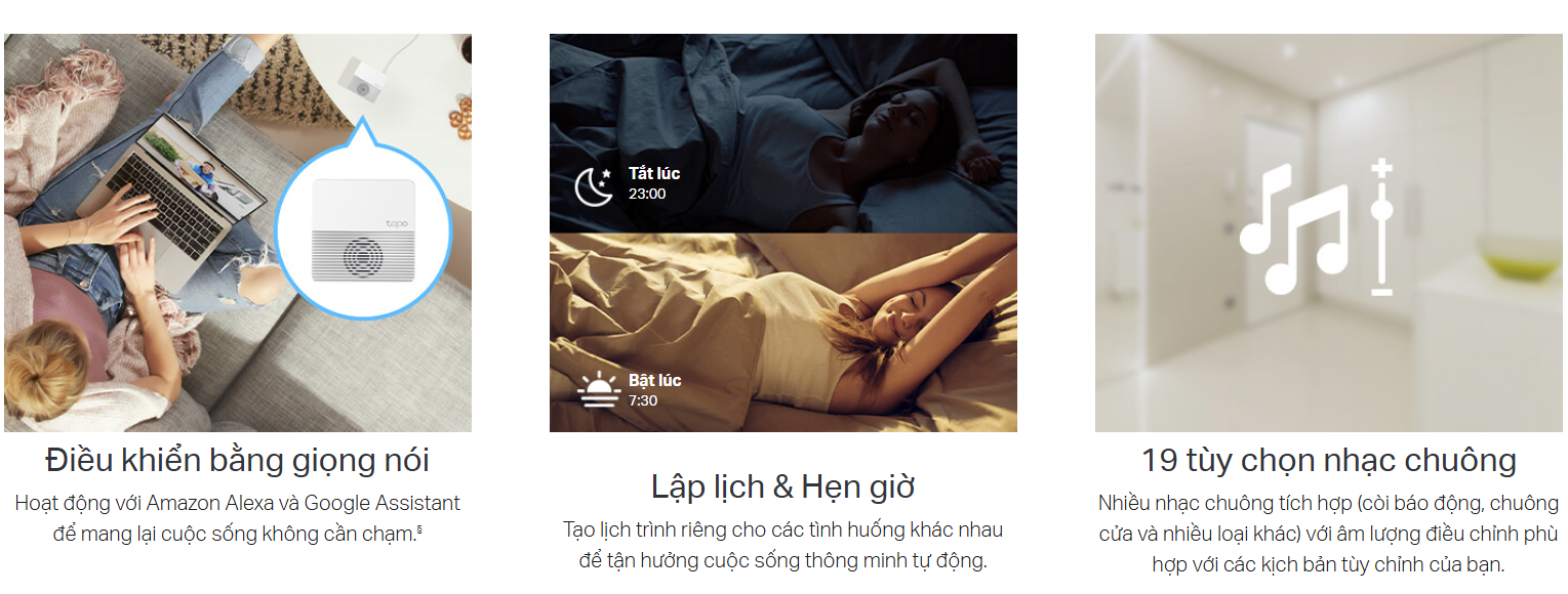 Báo động & Chuông thông minh - Hoạt động với camera thông minh (Tapo C420, Tapo C400), chuông cửa video (Tapo D230) và cảm biến như một hệ thống báo động hoặc chuông báo khi phát hiện chuyển động hoặc có khách đến.