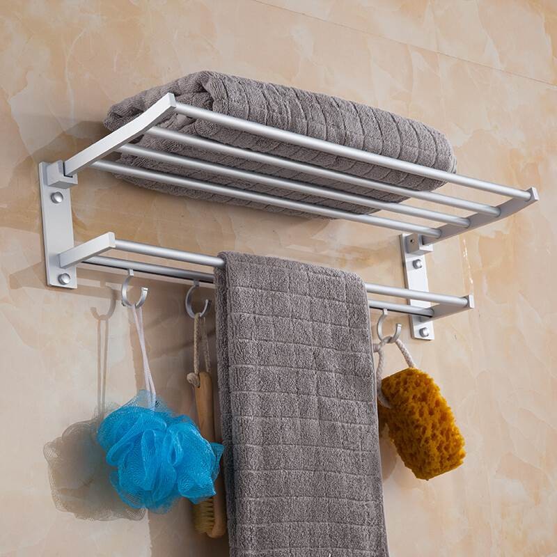 Tích hợp móc áo 5 chấu, thanh vắt khăn đơn và giá để khăn tiện dụng, có thể gấp gọn khi không sử dụng