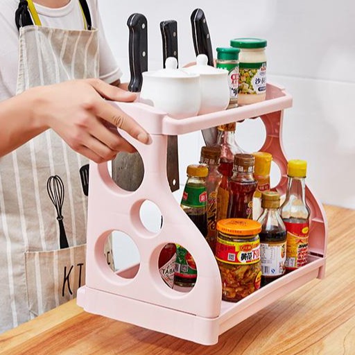 - Thiết kế 2 tầng nhỏ gọn, tiện dụng giúp bạn sắp xếp tất cả các loại chai lọ, gia vị, cài dao & các vật các dụng nhà bếp khác một cách gọn gàng, ngăn nắp & dễ dàng lấy ra khi sử dụng.