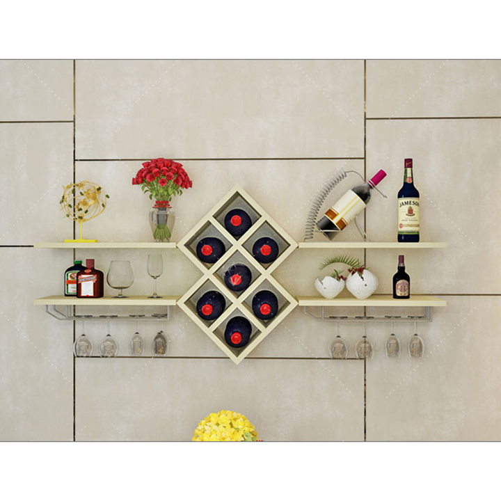 Với thiết kế nhỏ gọn, thông minh nhiều ngăn kệ kèm giá treo ly, kệ để rượu gỗ sẽ giúp bạn sắp xếp ngăn nắp các vật dụng trong gia đình. Bạn sẽ không còn phải băn khoăn về việc nên để ly, tách, chai rươu ở đâu sao cho hợp lý nữa, kệ treo tường sẽ giúp bạn làm điều đó.