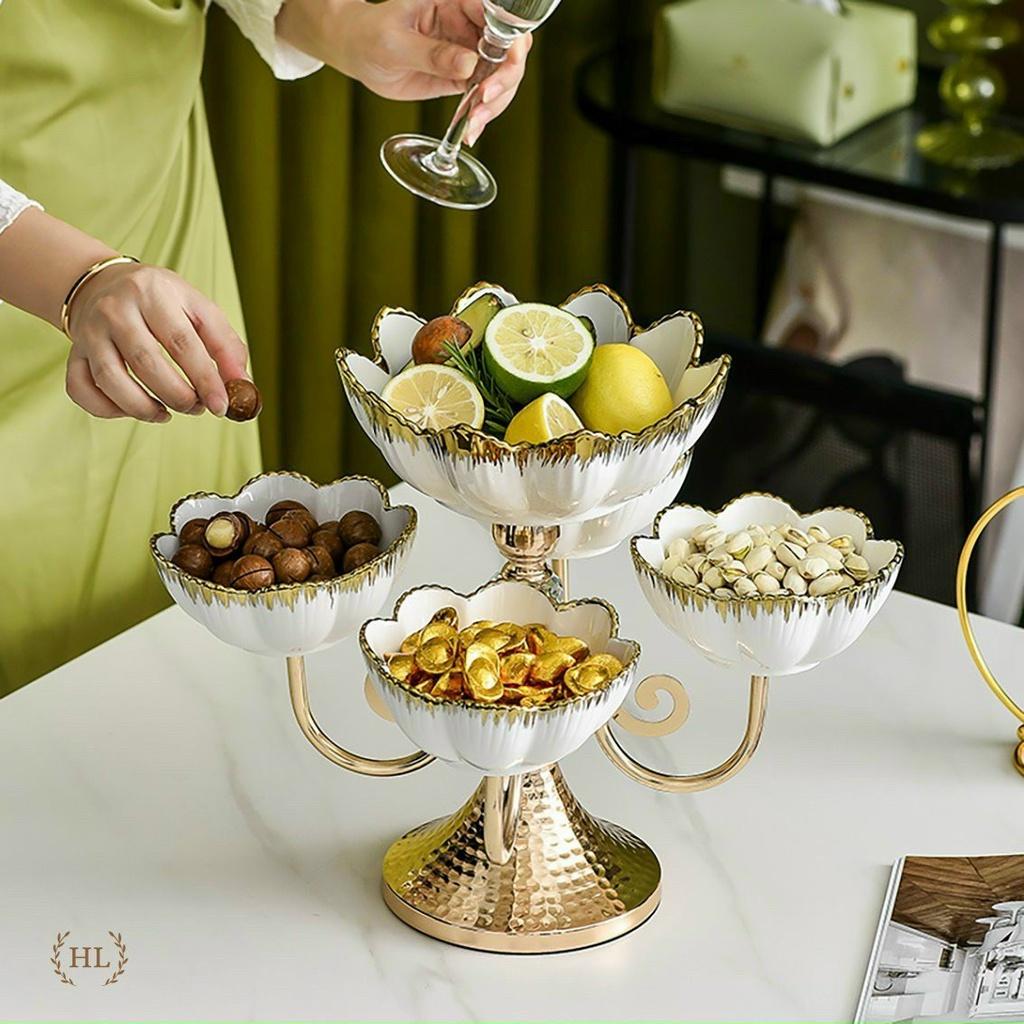 - Chất liệu sứ xương cao cấp nhiều tay đựng trái cây, đồ khô, hoa quả để phòng khách bàn trà cà phê sang trọng