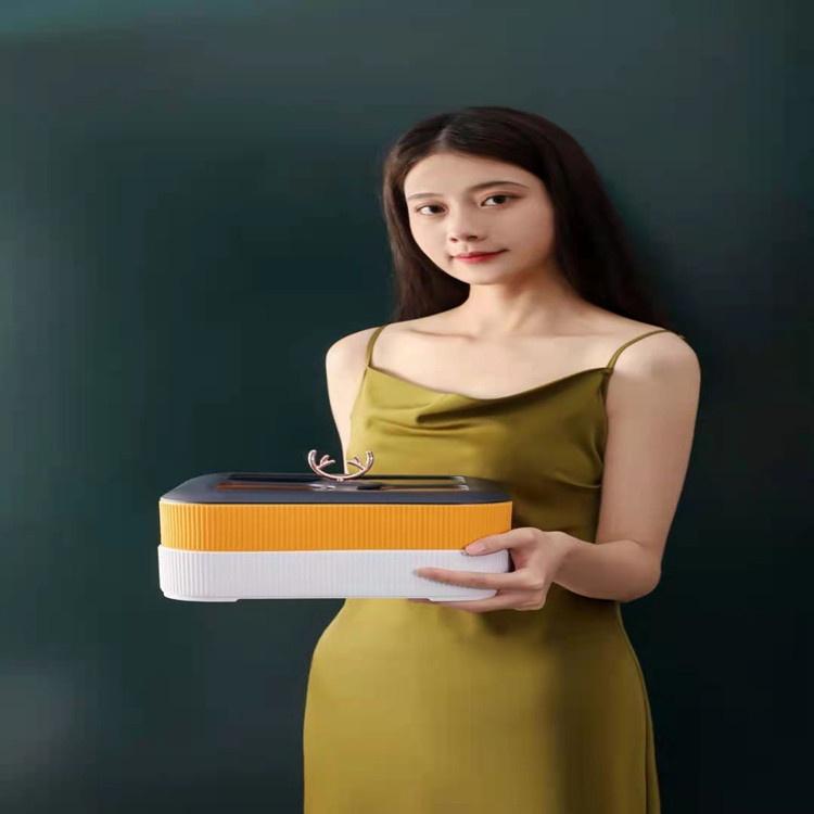Phần nắp hộp có đầu nắm hình hươu sang trọng, mang đến cảm giác tinh tế cho bàn tiếp khách của gia chủ.