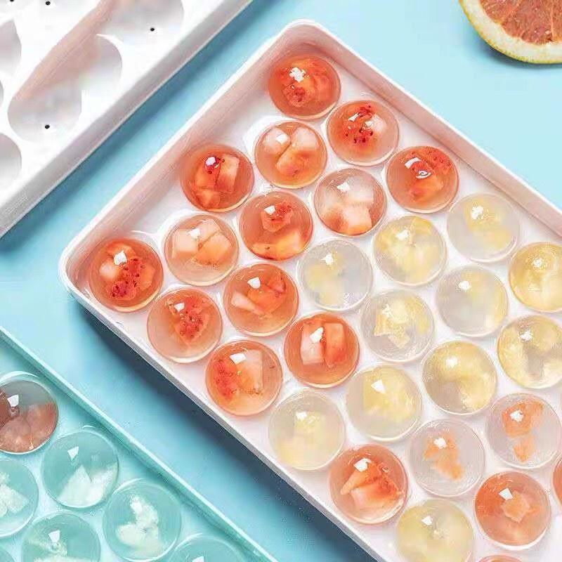 Khay Làm Đá Viên Có Nắp Đậy Khay Đá Tròn Tủ Lạnh 33 Viên Khuôn Làm Thạch Rau Câu Đa Năng Chống Mùi Tủ Lạnh