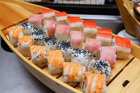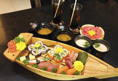 + Khay thuyền gỗ được dùng để trang trí Sushi - Sashimi trong phong cách trang trí ẩm thực Nhật Bản.