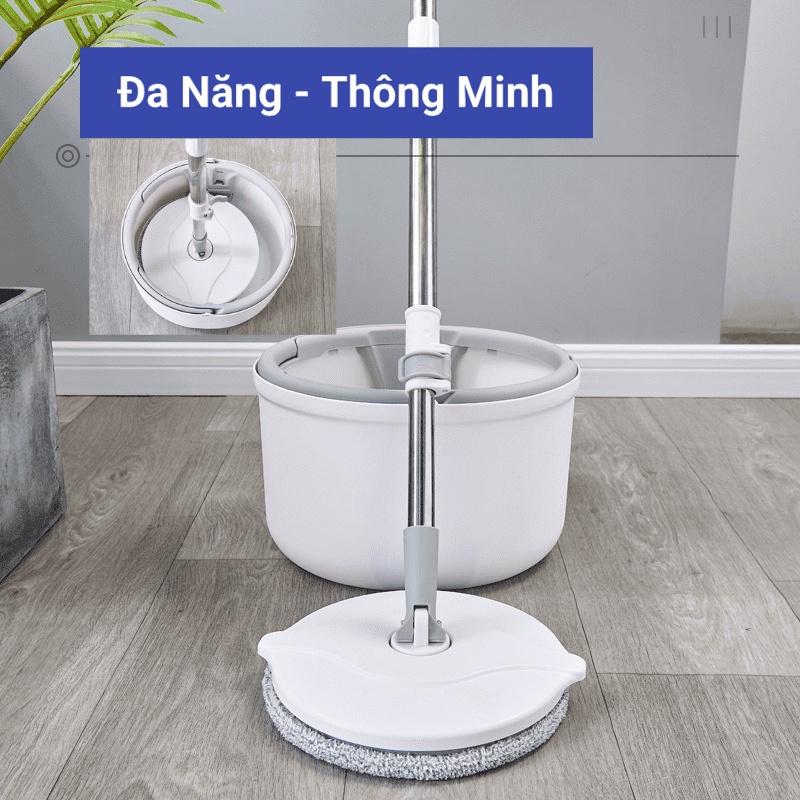 Tên sản phẩm: Bộ Lau Nhà K8 Thông Minh Có Thùng Vắt Xoay Tròn Nhựa PP, Cán Inox Dài 134cm, Miếng lau 25cm