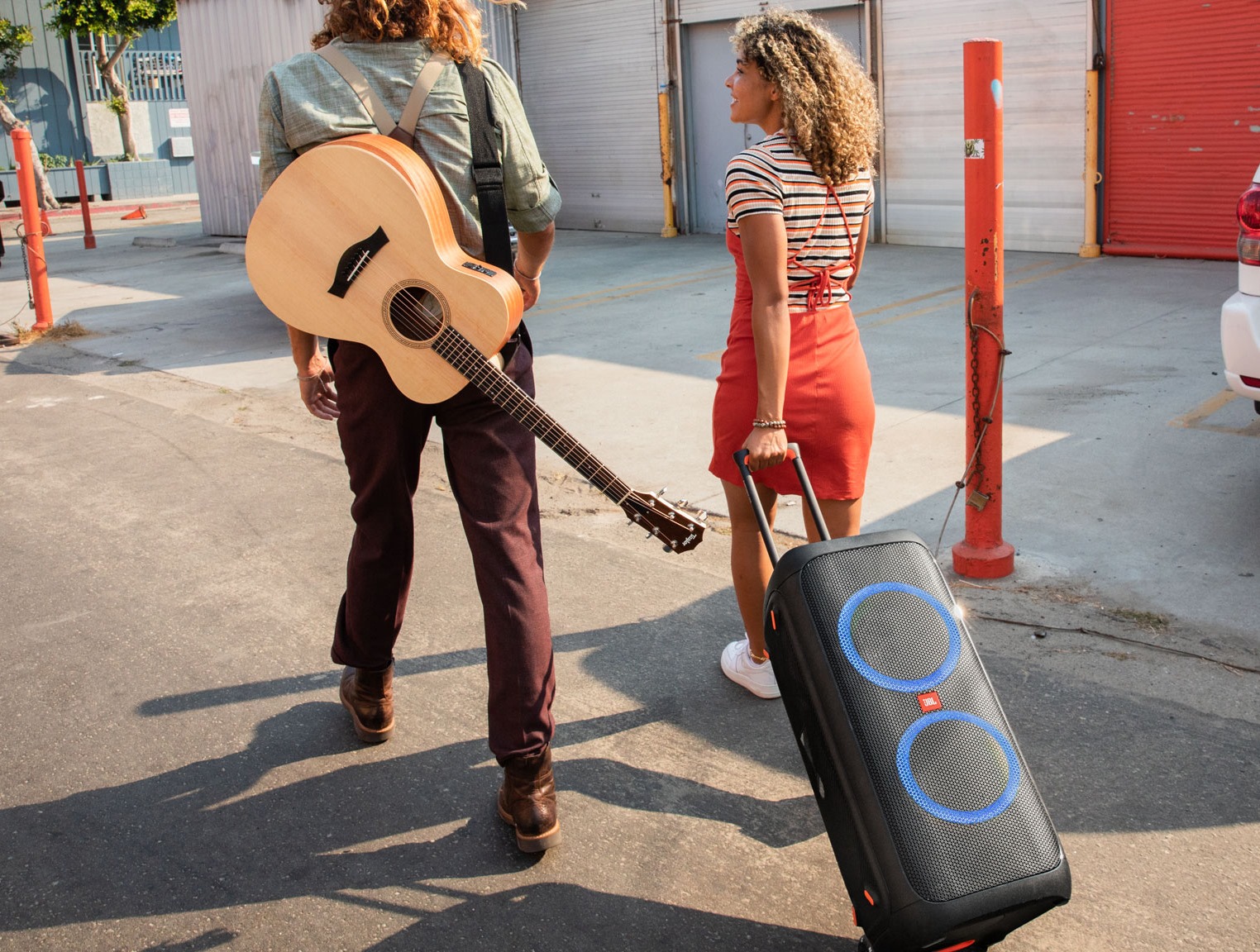 Nắm quyền kiểm soát âm thanh từ điện thoại tương thích với ứng dụng PartyBox. Dễ dàng thay đổi các bản nhạc, điều chỉnh màn trình diễn ánh sáng cũng như điều khiển các tính năng karaoke đơn giản chỉ bằng một vài thao tác chạm và vuốt.