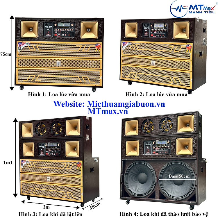 Với công suất lên đến 1500W, mang đến hiệu suất âm thanh vượt trội, cùng khả năng tái hiện âm trầm mạnh mẽ và chi tiết. Hệ thống loa gồm 2 Bass 50cm, loa Trung và Treble, giúp tạo nên âm thanh cân bằng và trung thực, hứa hẹn đem lại những giây phút âm nhạc đáng nhớ cho người nghe.