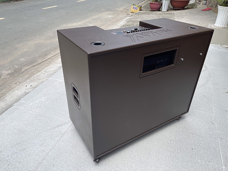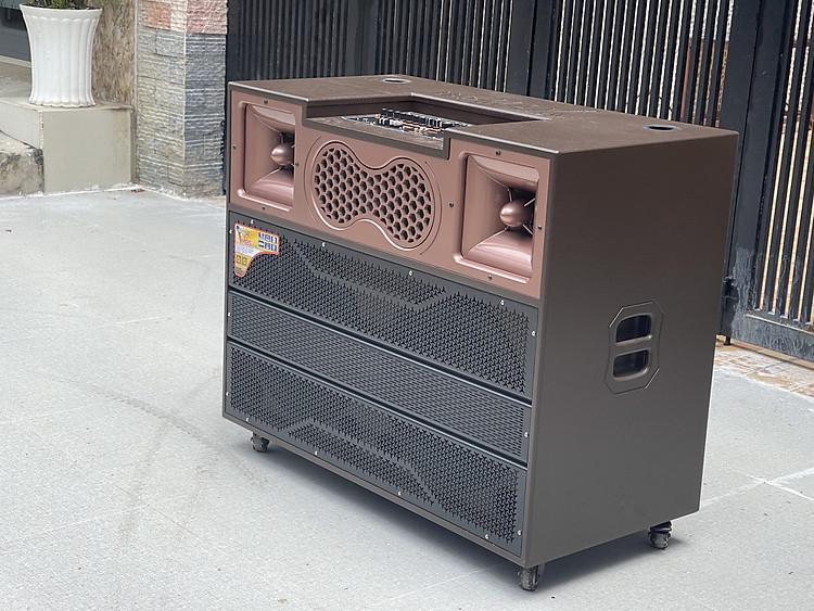 Sản phẩm loa kéo công suất cực lớn được thiết kế với màu sắc chính là nâu vàng đồng. Hai tone màu này vô cùng sang trọng và bắt mắt. Thùng loa được làm bằng gỗ cao cấp cùng với lớp sơn tĩnh điện bóng sáng. mặt lưới ecang được làm bằng kim loại có những đường nét lượn sóng vô cùng mềm mại mang lại cảm giác dễ chịu khi nhìn vào.