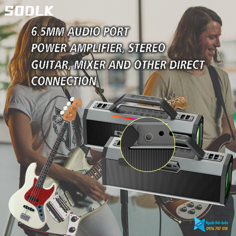 Hỗ trợ đầu vào: 6.5mm(cho micro), USB, thẻ nhớ TF, Aux 3.5, USB PC (cổng type C). có jack cắm đầu ra tai nghe