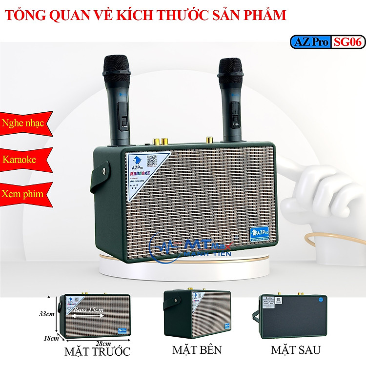 Loa Xách Tay AZPro SG06 - Đỉnh Cao Âm Thanh Cao Cấp Giá Rẻ, Tặng Kèm 2 Micro Không Dây và Chống Lăn.