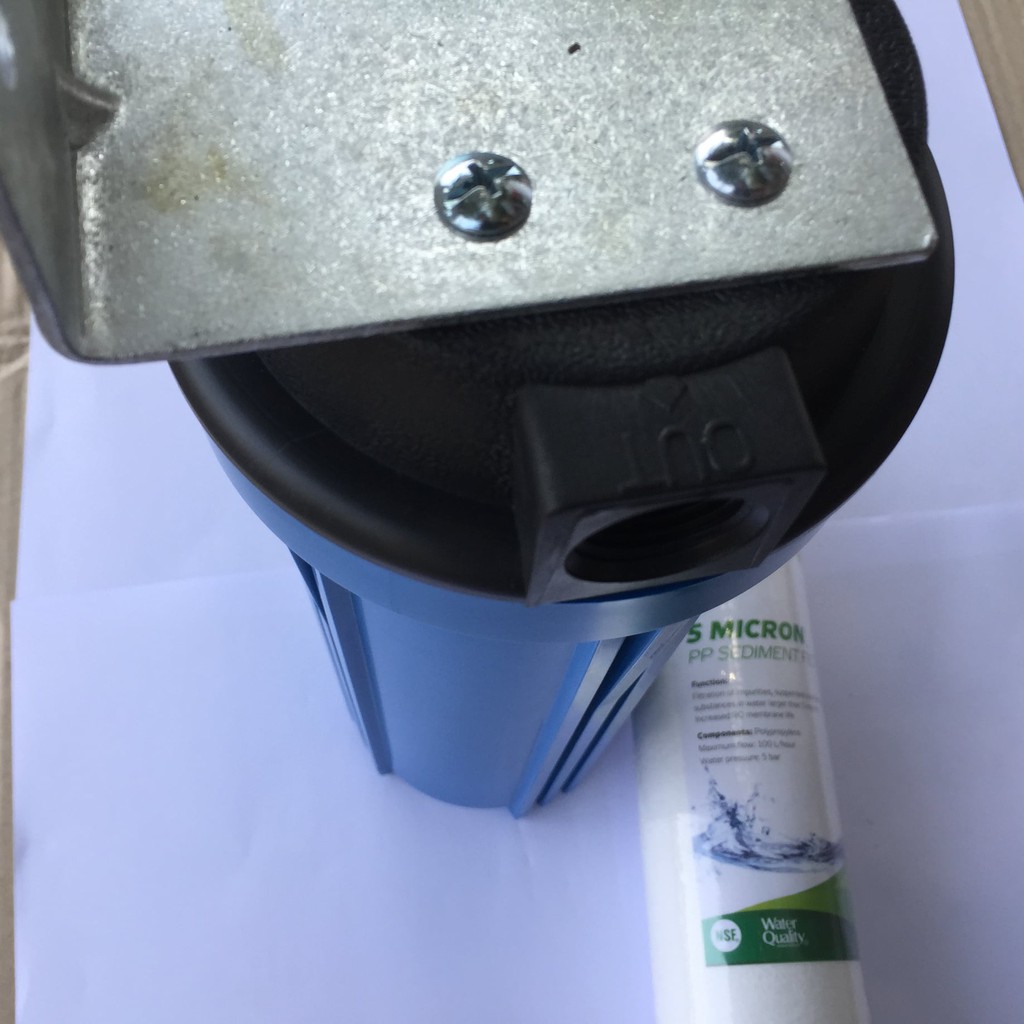 Lưu ý: Bộ sản phẩm bao gồm 1 cốc lọc màu xanh, 1 lõi lọc thô số 1 và 1 bát bắt tường để các bạn dễ dàng gắn bộ lọc vào tường bằng 2 chiếc vít nở