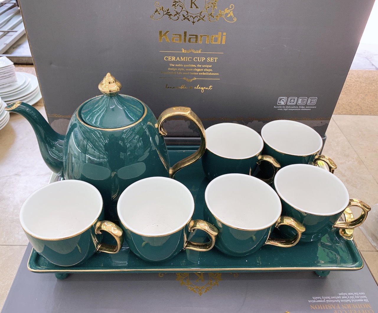 Bộ ấm chén kèm khay sứ pha trà cà phê siêu sang cho ngày Tết- Bộ cốc chén pha trà cà phê kèm khay bằng sứ