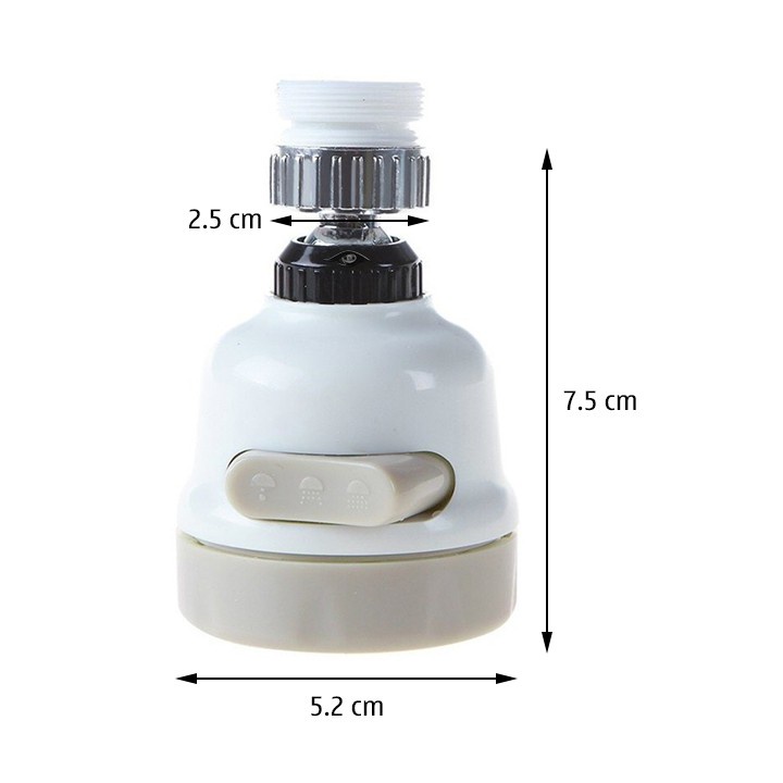 Đầu Nối Vòi Nước Tăng Áp Điều Chỉnh 2 Chế Độ Nước Chảy Xoay 360 Độ, 720 Độ Cao Cấp