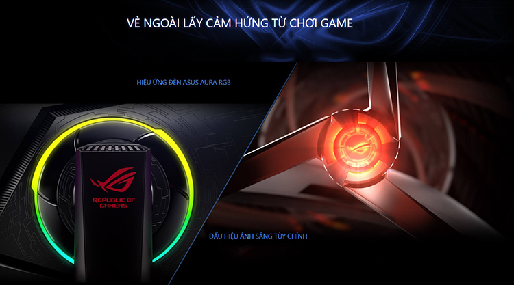 Các màn hình chơi game ROG Strix XG Series đều có đèn ASUS Aura RGB ở mặt sau. Nó cung cấp nhiều chế độ sáng để tạo một bầu không khí phong cách và cực ổn cho mọi thiết lập chơi game.