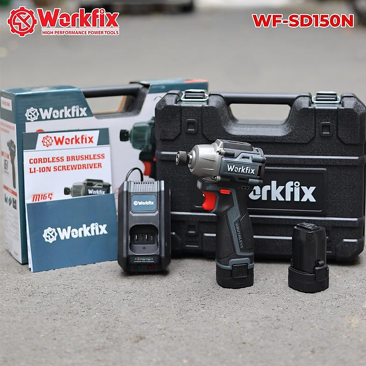 Máy Bắn Vít Workfix 150N.m - 3 Tốc Độ - Động Cơ Từ - 2 Pin 16.8V/2Ah - Đầu 1/4 - Nhỏ Gọn Chuyên Dùng Làm Nhôm Kính, Làm Mộc, Nội Thất...