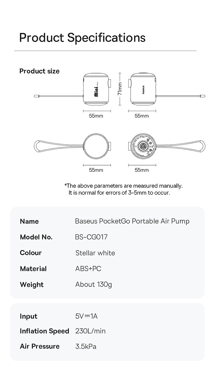 Nhà sản xuất: Baseus | Xem thêm các sản phẩm Máy bơm của Baseus