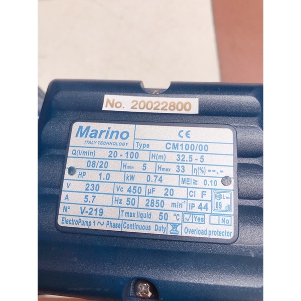 Nhà cửa & Đời sống > Dụng cụ & Thiết bị tiện ích > Máy bơm nước & phụ kiện || Máy bơm nước Marino CM100/00 có phiếu bảo hành tặng kèm dong , cổ hút , cổ sả , băng tan