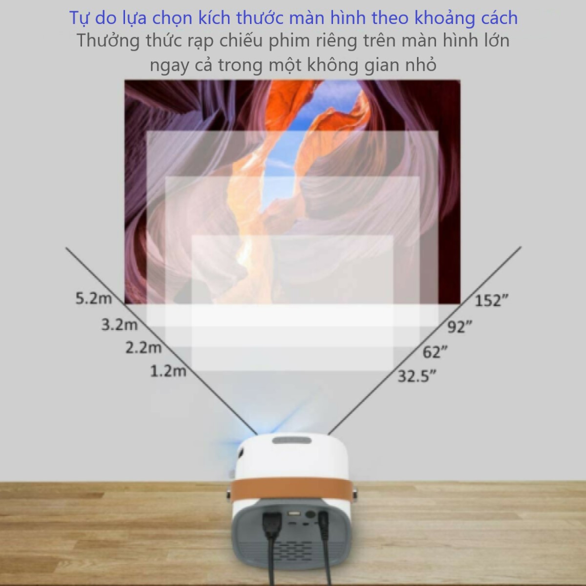- Màn hình máy chiếu: có thể điều chỉnh độ lớn từ 32 - 152 inch tùy vào nhu cầu sử dụng