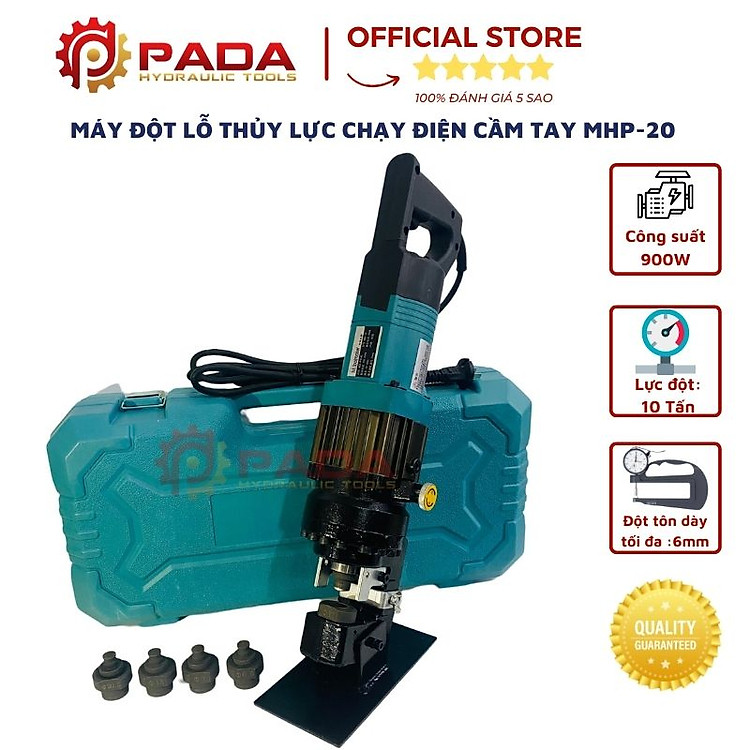 Máy Đột Lỗ Thủy Lực Cầm Tay Chạy Điện MHP-20 là thiết bị cầm tay chuyên dụng tạo lỗ tròn,ovan hoặc hình vuông trên các vật liệu kim loại như đồng,nhôm,tôn,thép,inox...máy có thiết kế nhỏ gọn,trọng lượng nhẹ,sử dụng trực tiếp nguồn điện 220V.Rất tiện dụng khi mang công trình,thi công trên cao...