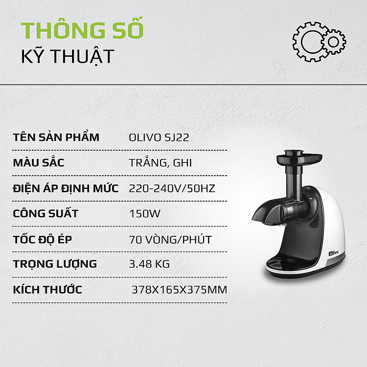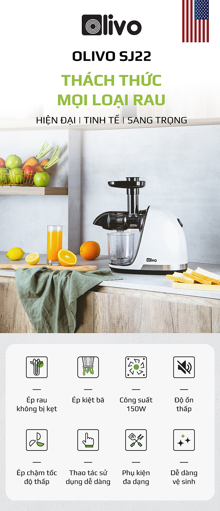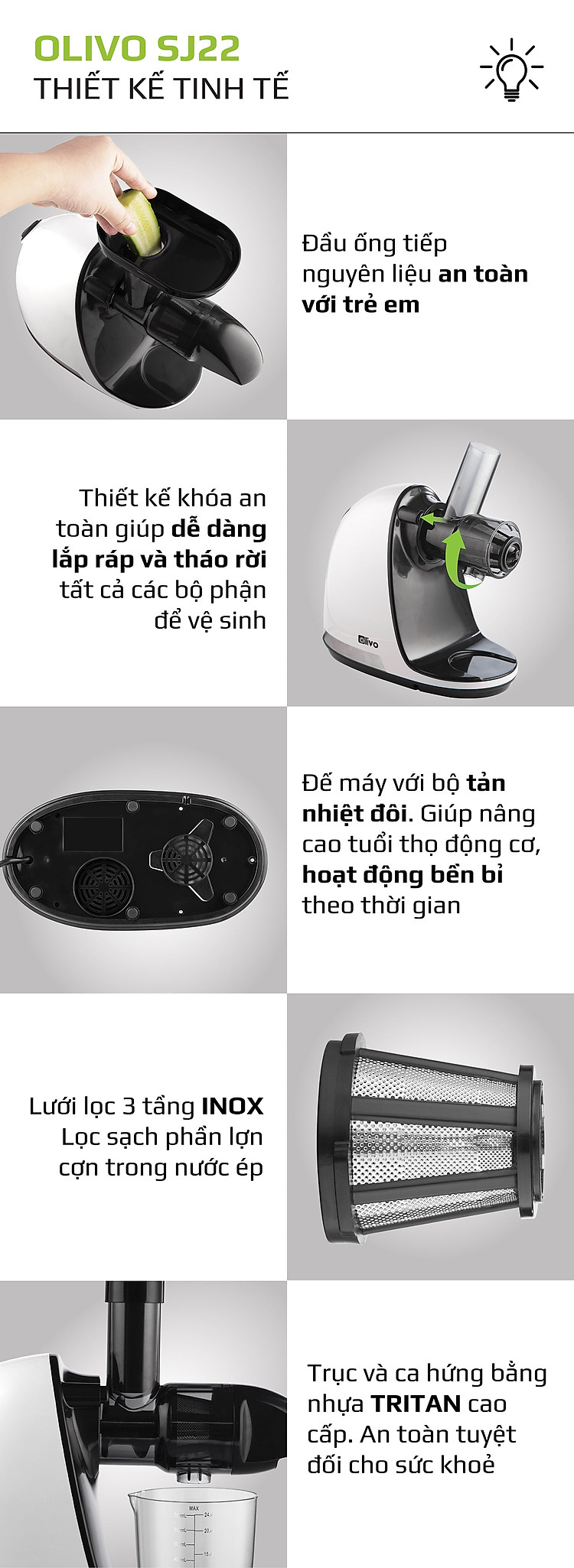 - SJ22 là dòng máy ép chậm mới nhất đến từ thương hiệu OLIVO với thiết kế hoàn thiện, công năng tối ưu nhất đem lại hiệu quả ép đáng kinh ngạc cho gia đình bạn. Cùng khám phá những tính năng nổi bật ở chiếc máy ép “nhỏ nhưng có võ” này nhé!