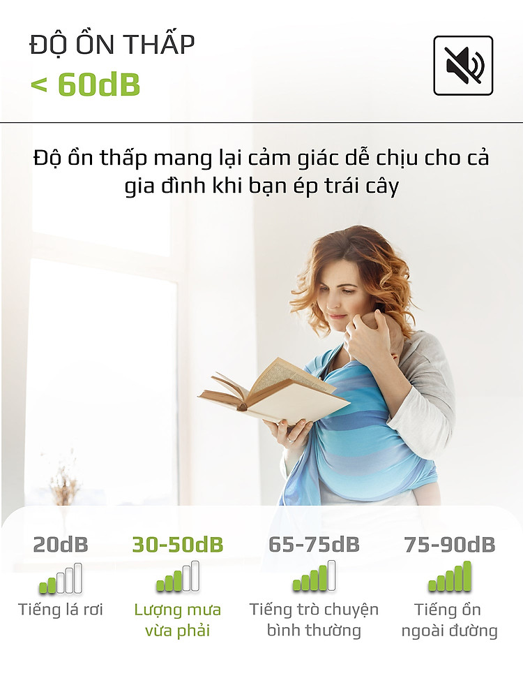 - Độ ồn dưới 60dB, không làm ảnh hưởng đến không gian chung của cả gia đình bạn.
