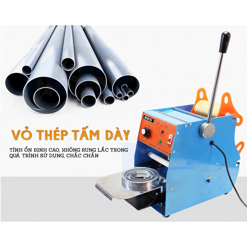 Máy dập miệng cốc đa năng có thể ép được miệng ly nhựa có dung tích 700 ml trở xuống (với ly, cốc nhựa 300ml cần mua thêm vòng). Đây là sản phẩm lý tưởng cho các cửa hàng trà sữa chân châu, nước mía, nước ép trái cây, hoa quả, quán chè, sinh tố...