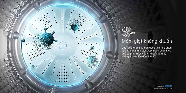 | Công nghệ giặt | Self Cleaning tự vệ sinh mặt ngoài lồng giặt, Lồng giặt Pillow, Mâm giặt kháng khuẩn ABT |