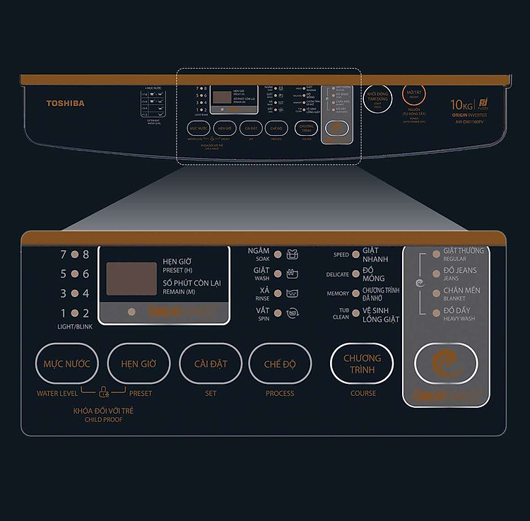 | Công nghệ giặt | Great Waves, Phục hồi chương trình giặt dang dở, Khóa trẻ em, Vệ sinh lồng giặt |