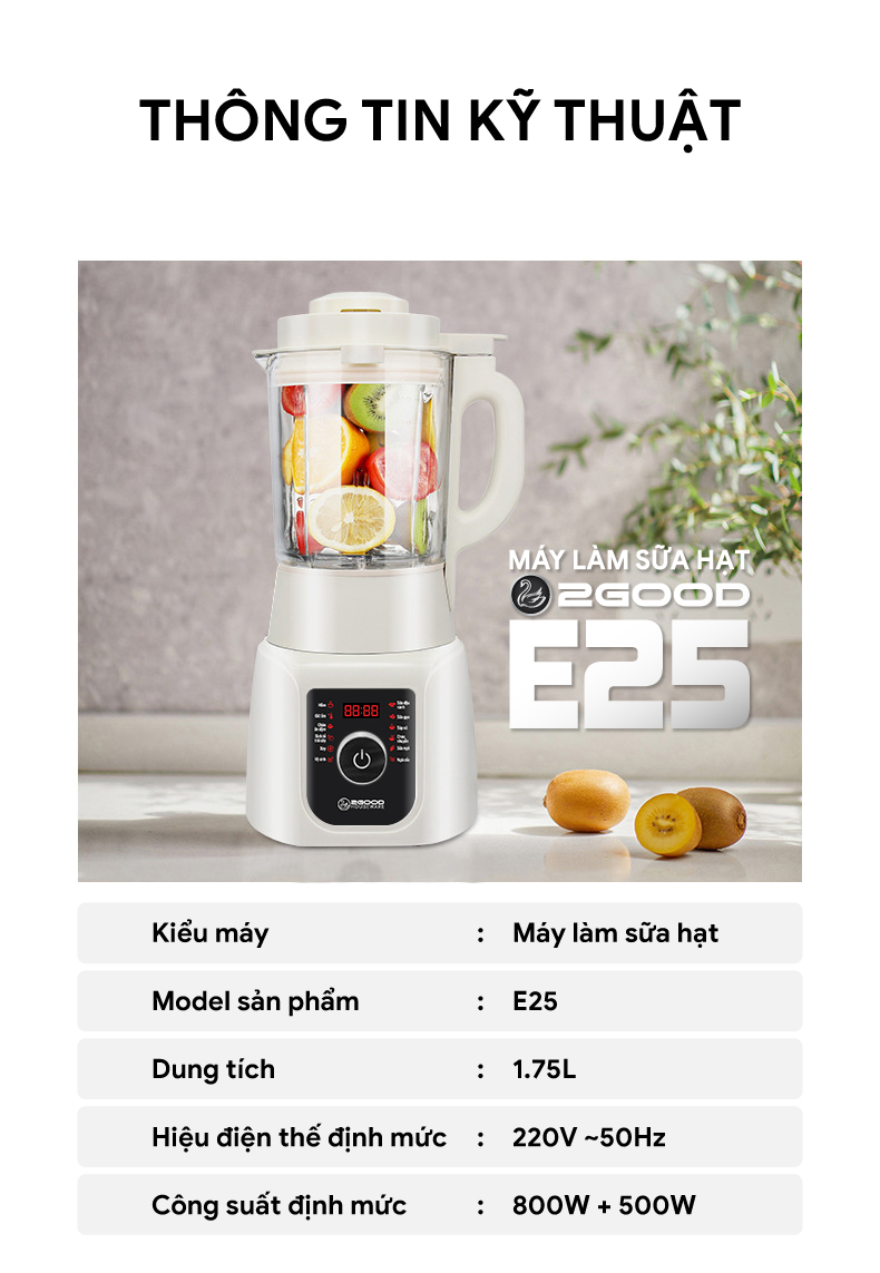 Giới thiệu Máy Làm Sữa Hạt 2GOOD E25, công suất Lớn, Xay mịn, Dung tích 1.75 lít, Sẵn 12 Chế độ Tiếng Việt, Phím vặn dễ sử dụng - Hàng Chính Hãng