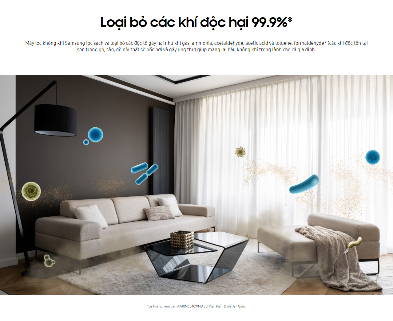 - Khử mùi và khí độc, kháng khuẩn 99.9%