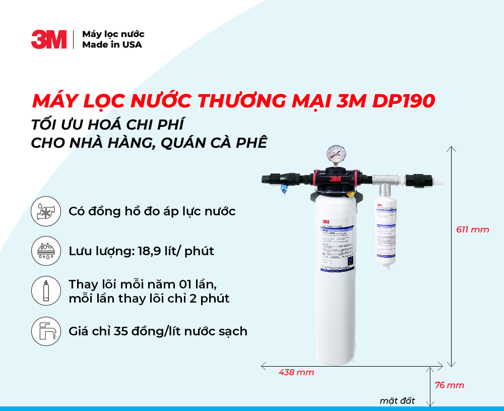- Máy lọc nước 3MDP190 (đã gồm lõi lọc đầu tiên và bộ lọc chống bám cặn)