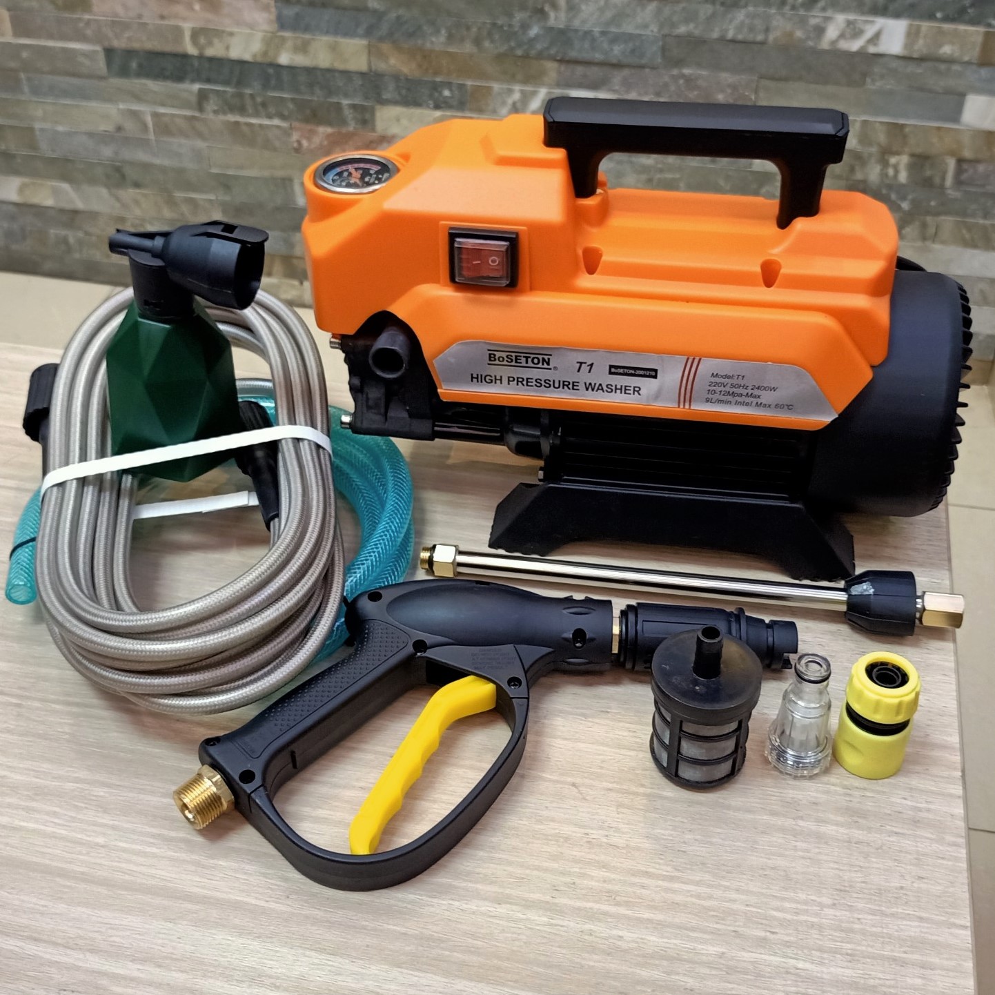 - Máy rửa xe gia đình T1 với áp lực phun 150 bar mạnh mẽ, dễ dàng xịt rửa sạch rong rêu, mảng bám, và các vết bẩn trên xe cộ, nội thất dễ dàng ngoài ra máy còn có thêm chế độ chĩnh phun sương dựa trên cần vòi xịt thông minh các bạn có thể tưới rau, cây cảnh , phun thuốc, tắm cho vật nuôi thú cư