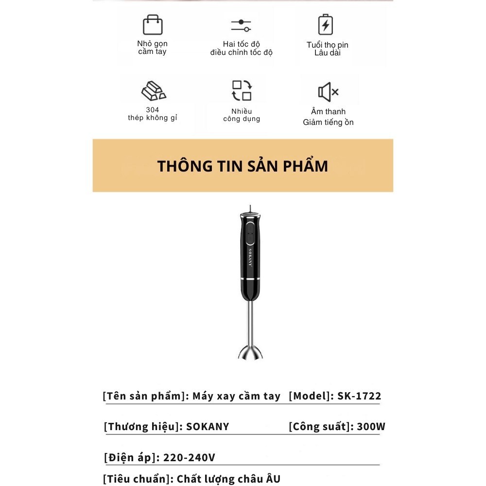 Máy xay cầm tay SOKANY SK-1722 loại máy đơn, máy xay sinh tố cầm tay, máy xay đa năng cao cấp - HÀNG CHÍNH HÃNG