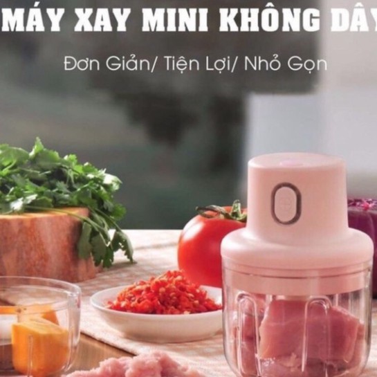 Máy Xay Mini Sạc Điện, Có Cổng Sạc Usb, Xay Hành, Tỏi, Rau Củ Quả - Tiện Lợi Nhỏ Ngọn - Dung Tích 250ml