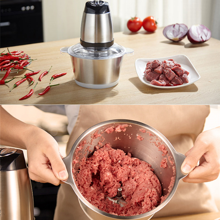 - Chất liệu cao cấp, bền bỉ: Đặc biệt nắp của máy xay thịt được làm bằng chất liệu inox 304 cao cấp, chống va đập mạnh và đảm bảo an toàn cho sức khỏe. Lưỡi dao inox bền chắc, chống gỉ sét, không chứa độc tố gây hại cho sức khỏe. Lưỡi dao có độ bền cao, sắc bén nên có thể xay nhuyễn thực phẩm một cách dễ dàng, không gây nặng máy trong lúc vận hà"