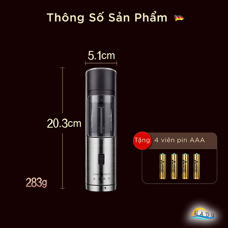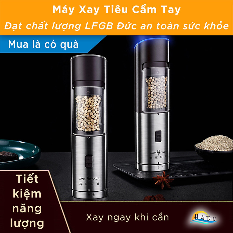 Máy Xay Tiêu Cầm Tay Mini Tự Động Bằng Pin Có Đèn Cao Cấp Đạt Chất Lượng Đức SSGP