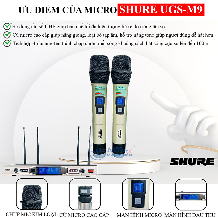 Micro Đầu Thu Lớn SHURE UGS M9 - Siêu Phẩm Micro Karaoke 4 Râu Cao Cấp Giá Rẻ Lọc Âm Nâng Giọng Chống Hú Rè Cực Tốt Bắt Sóng Xa Đến 100m