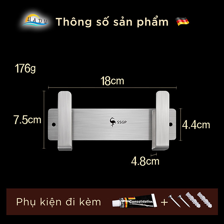 Móc Dán Tường Inox 304 Cao Cấp Đạt Chất Lượng Đức SSGP